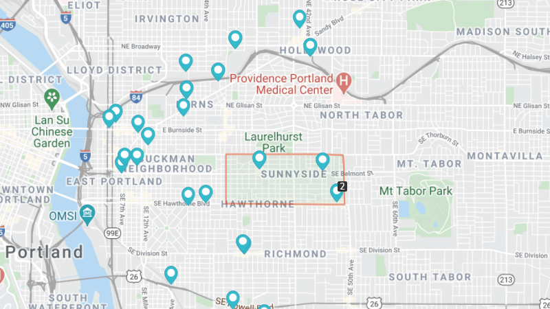 Sunnyside is located in the southeast section of Portland. The area lies between SE Stark Street and SE Hawthorne Blvd from the north to the south. From west to east, Sunnyside stretches from SE 28th Ave to SE 49th Ave. Laurelhurst, Richmond, Buckman and Mount Tabor are Sunnyside’s neighbor and makes it easy to get around the city.