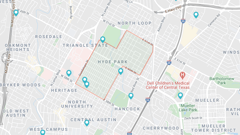 Part of Hyde Park’s appeal is its great location. The neighborhood’s boundaries are 38th Street to the south and 45th to the north, Duval to the east and Guadalupe to the west.