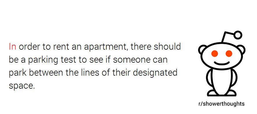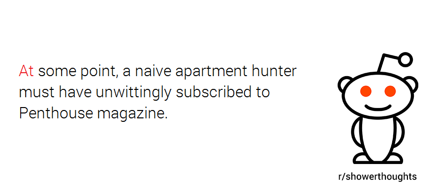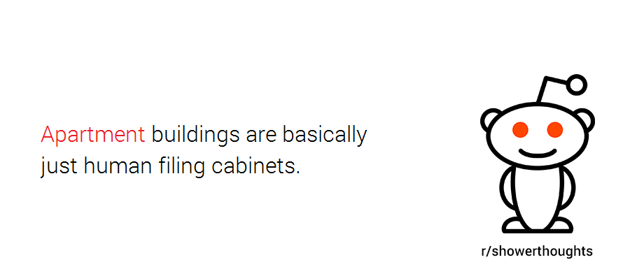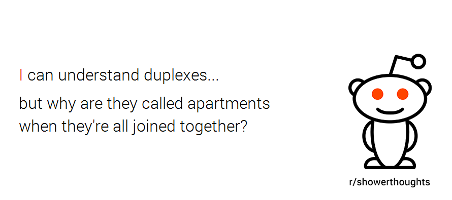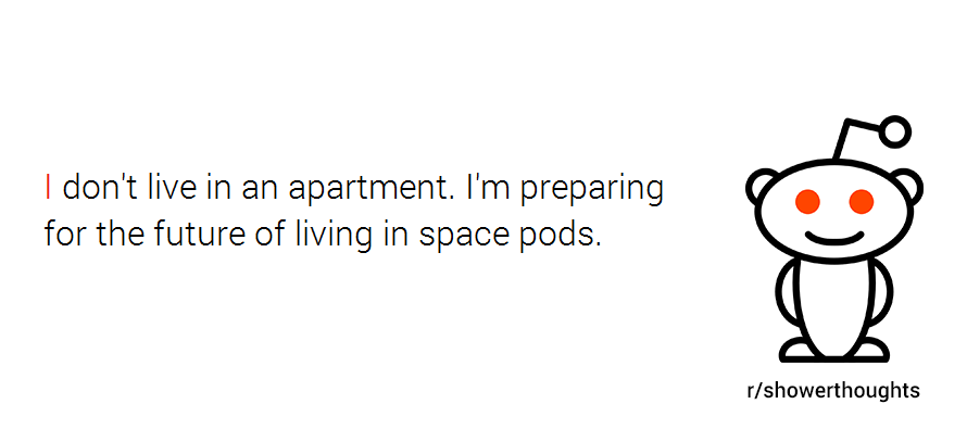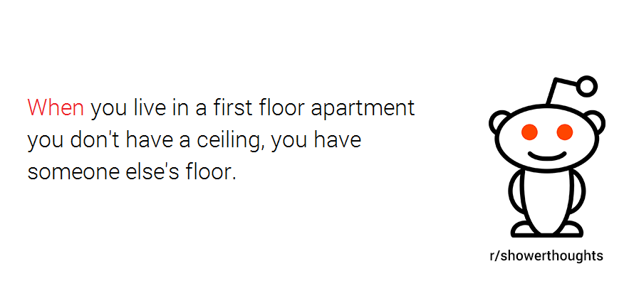 That’s probably what makes r/Showerthoughts one of the most popular subreddits out there, with close to 6 million (quite outspoken) followers. And since we’re in the apartment business, we were curious what kind of thoughts people have while in the shower regarding their apartments. So we went ahead and collected them for you; without further ado, here are 10 totally valid shower thoughts about apartments: