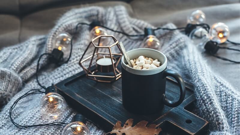 Sipping on tea while sitting next to a burning candle is one of the most common things one associates fall and winter with. Lighting candles throughout your home is a great way to diffuse a fall scent, like pumpkin spice, spiced cider, or marshmallow fireside, to name a few, and they also provide just enough light to get the basics done around your home. Whether it’s walking to the kitchen, bathroom, or finding a blanket or snacks for watching a movie, candles can easily light the way, without having to turn on the lights.