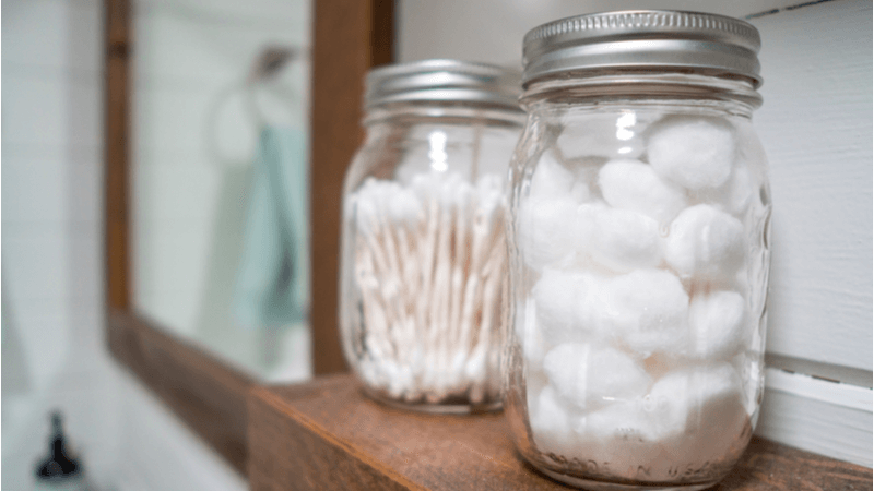 Sure, you could keep your cue tips and cotton swabs hidden away in your medicine cabinet in their original packaging, but why do that when you can quickly turn them into decorations for your bathroom? If you have the space, buy a couple of mason jars (or use ones you already have for a cheaper version) and store your everyday items in style.
