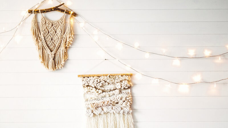 Regardless of whether the space has plenty of natural light, twinkle lights are essential for any boho bedroom. Hang them on a mirror, the walls or the bedframe to nail that bohemian feel.