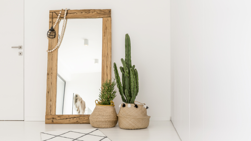 Mirrors can change the look and feel of a room instantly. They essentially create space and light where there shouldn’t be, especially if you place them so they reflect an area with lots of texture and natural light. Plus, they’re incredibly versatile pieces — if you want to go for some boho flair, lean a mirror with vintage-style frames on the wall. Want to go for something more modern? Cover an entire wall with mirrors, and your living room will appear double in size.