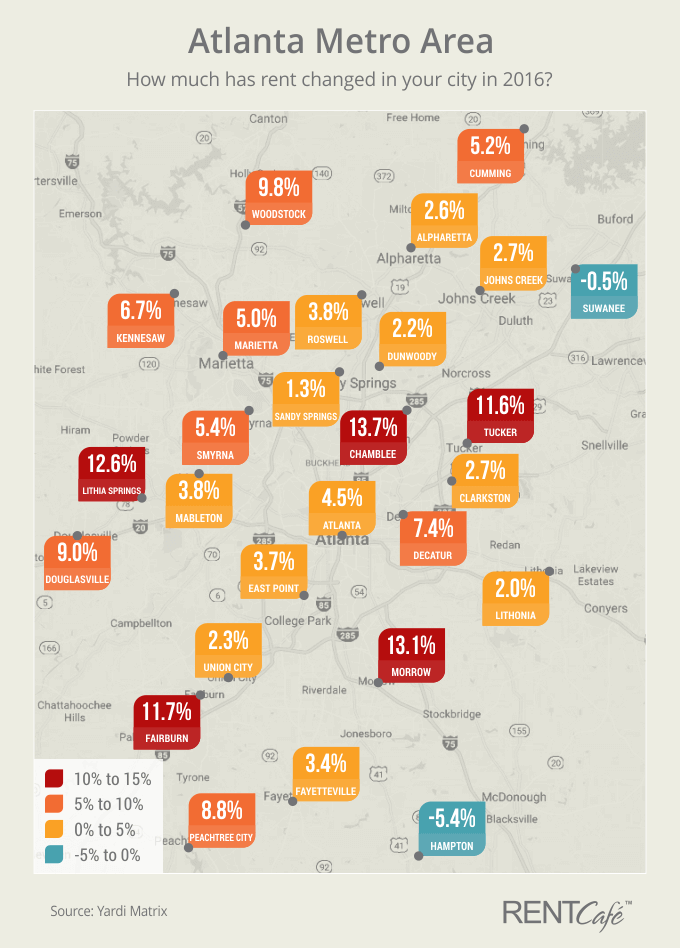 Atlanta Suburbs Beat City with Fastest Growing Rents in 2016