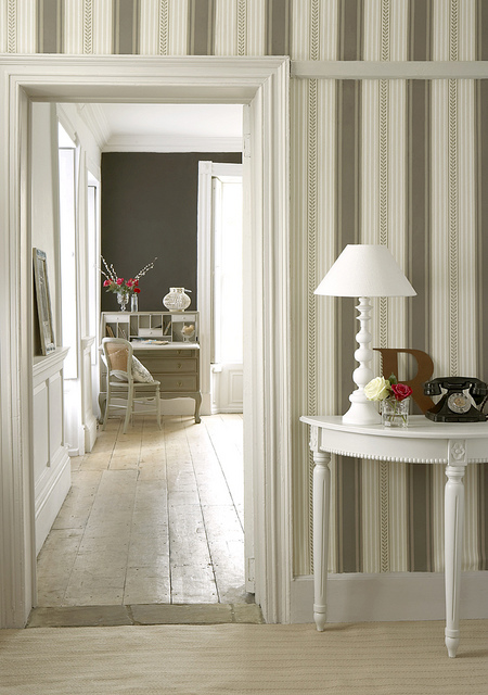 Large-scale prints and flocked metallic papers should be used exclusively in decorating airy, spacious rooms. Just keep in mind that cluttered houses cannot handle wallpaper. If your house is not neat and organized, you should stick to paint.