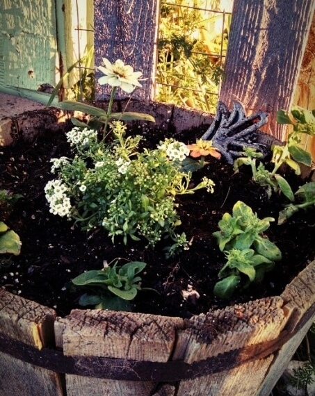 Even though your edibles will bloom and produce, cheery annuals such as petunias, pansies, lantanas, begonias, and geraniums can bring life to the drabbest cityscape.