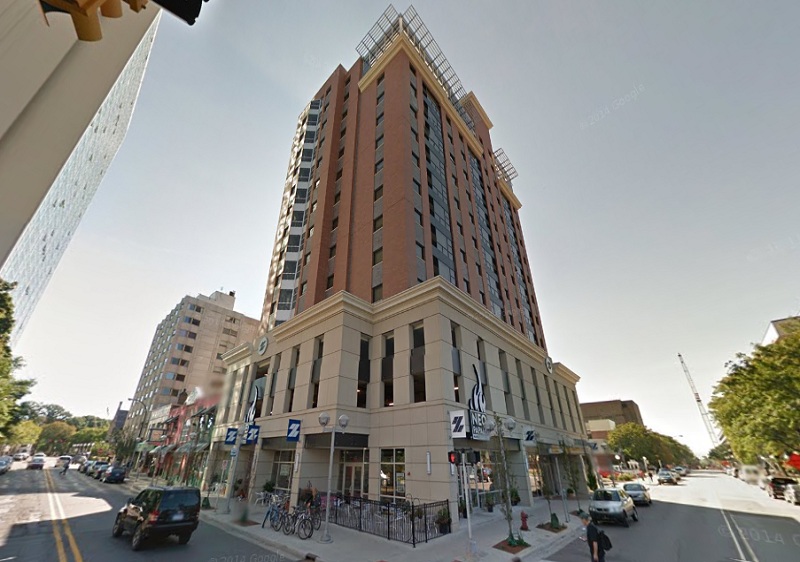 Zaragon Place at 619 East University Drive was at the vanguard of upscale campus apartment living at the University of Michigan when it opened in 2009. The ten-story building is filled with two-, four- and six-bedroom units with industrial, loft-like ceilings. The fully furnished rooms boast flat-screen televisions and granite countertops. Students enjoy an on-site fitness center.